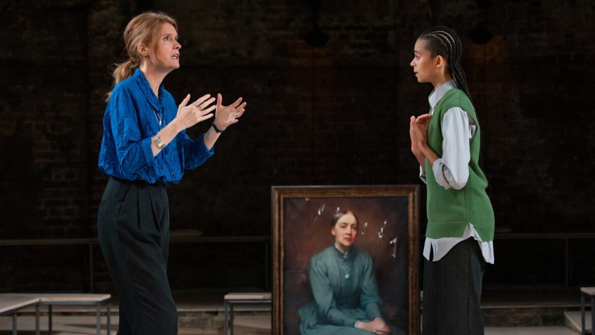 Justine Mitchell and Phoebe Campbell in Alma Mater at Almeida Theatre Photo Credit : Ali Wright