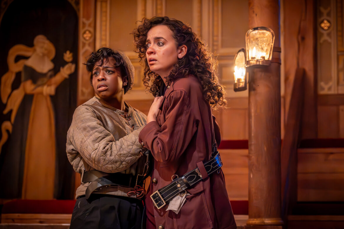 It’s only at this point that Appiah’s main role as Belaria is realised and Innogen’s kidnapped twin siblings Giderius (a warmly truculent Aaron Anthony) and (now) sister Arvariga (Saroja-Lily Ratnavel’s staunch, passed-over sibling, earlier Lady Helen) turn up: replete with a cute family war-cry.