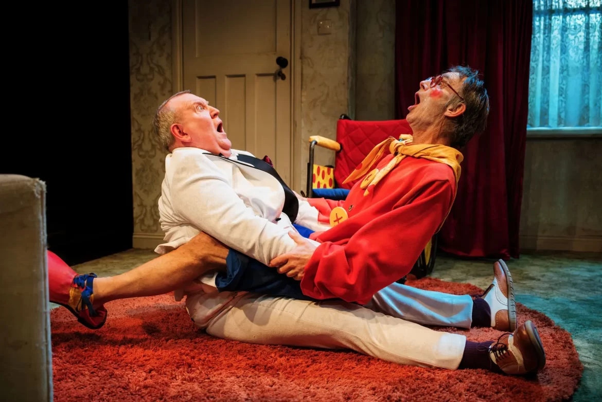 Indeed, he’s been Cliff’s amanuensis. Which troubles Billy, before Cliff emerges seeking an invisible snake dressed up as Noddy, invoking the old days. For Cliff they’ve been the only days, ever since Billy shot Cliff in the eye with an air-gun forty years ago that night. “Fired… and hit by a Pinochet” as Cliff winces sadly: it ended Cliff’s career before Billy went solo as the “third most offensive comic in Britain”.