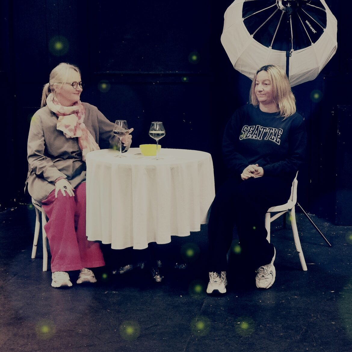 O’Rowe’s best known for dramatising Sally Rooney’s Normal People with Alice Birch. There’s something of that feel here. To a haunted piano piece – Yann Tierson’s ‘Porz Goret’ – Cora (Charly Sommers) meets Anna (Samantha Ferree) for tea: Strat Mastoris’ gleam of daylight playing on a table with cups or glasses in a winter-lit cafe. Chris Dent’s sound envelope is equally deft.