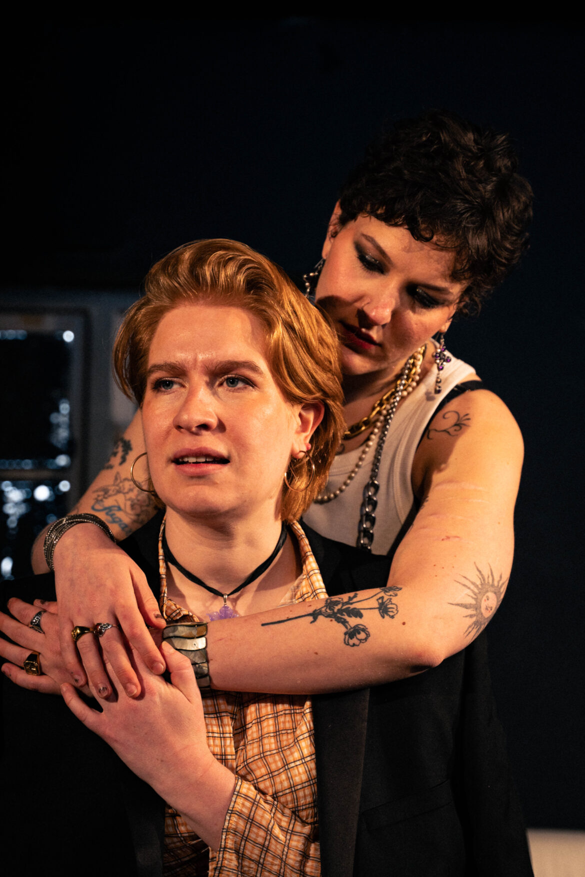 And there’s a question-mark tacitly hidden in this play too. It’s not that the relationship is quite toxic. Mags, played with anxiety and a pitch of naturalism by Mullock, is relatively without guile. But she’s shrewd and Mullock is full of nuance: she enjoys the widest range of emotions. And she’s good at detecting things. She plans a revenge showdown wrapped as a birthday present for her prospective bridesmaid. But then Ruby wants to be the bride.