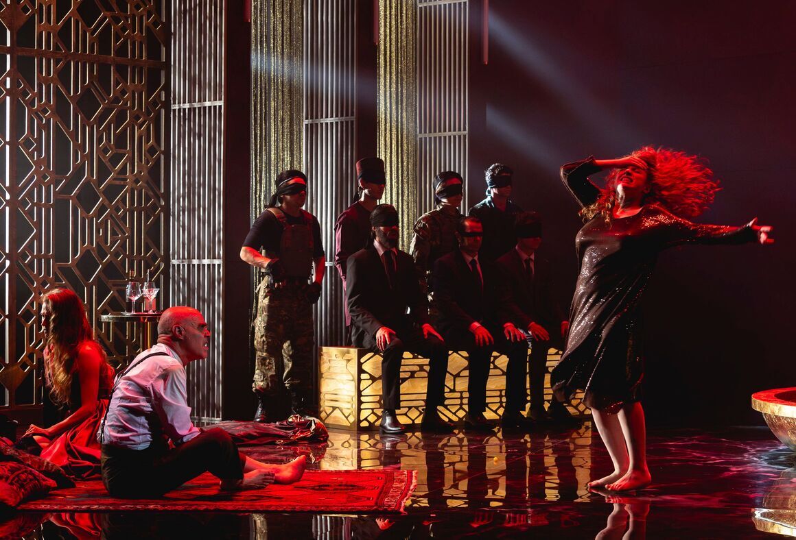 Cultural reappropriation has its virtues, and this play has too long basked in another European bit of 1890s exoticism. Nevertheless the largely western-based creatives don’t break new ground in this 2024 production. Except in pelting us with luxury gone rancid, and here there’s a twitch of unease with slight wallowing in gorgeous palaces. The passion though, the intensity of repugnance and desire that should thrill between Roth, Sayag and Tavori, even in this Wilde-crabbed ritual, is often lacking. The seethe and thrust back that should act like magnets reversing, can’t be emulated by Salomé’s tantrums and the men’s different kinds of sulk. Only Fraifeld enjoys an all-round response to her icy disdain and maternal affection. Roth, Sayag and Fraifeld would be well worth encountering in a happier production and happier world. Sheer spectacle powers this through, with a twist of unease for having seen it.