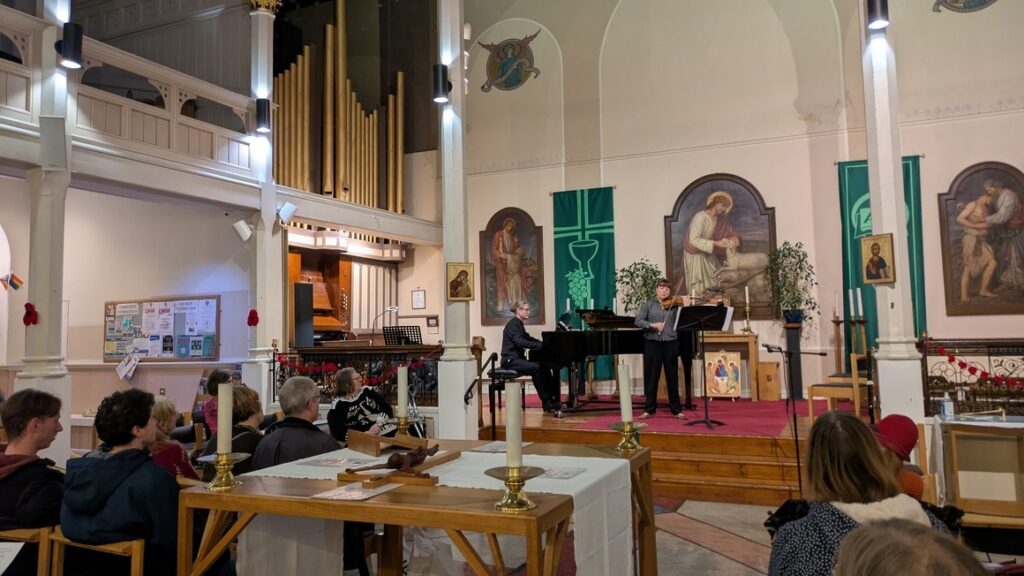 Illness forced a change of programme and Sue Mileham stepped in despite recovering from a cold to sing – with Nicola Grunberg on piano – a mini recital of magical songs, in keeping with tonight’s theme.