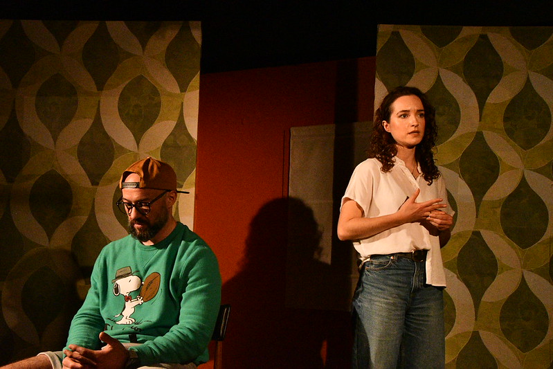 Whilst Leonard strikes a fine stridency and keeps to that, matching Oprea at his most outraged, Delevine, whose characters is most outraged, opts for a quieter register altogether. It makes hers one of two outstanding performances. James Potttenden takes the unenviable role of Fabian, almost treated as an irrelevancy by wife Nicola, wibbling about value. Potttenden leans into Fabian’s irrelevance to his wife. Later though he takes on a remarkable physical performance of a man literally poisoned by items he’s trying to save, coming on demonstrably ill. He ends with one arm stuck in the air. But how?