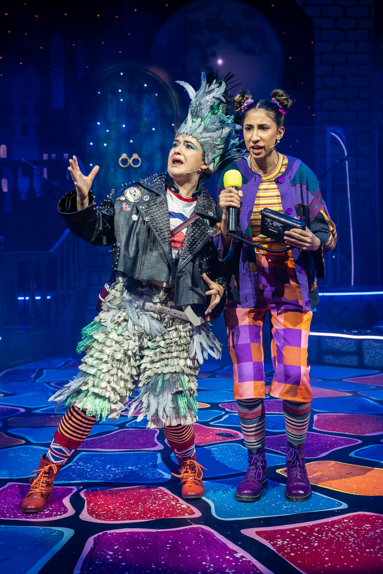 Stone’s known for shows and original music for Alice in Wonderland, Peter Pan, Hey Duggee Live, all recently; and made her directing debut Stalled at King’s Head Theatre. Though most of the music is pop standards, Stone composes a little original music here too. I wish she might have composed one or two more songs: they hug her plotline neatly and aren’t just slotted in. Still, panto needs its well-loved standards, and given her schedule, Stone mightn’t have had time.