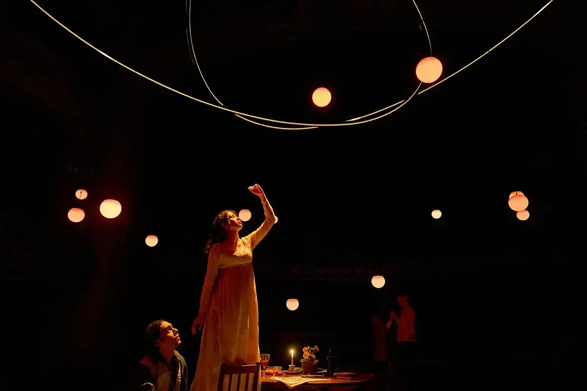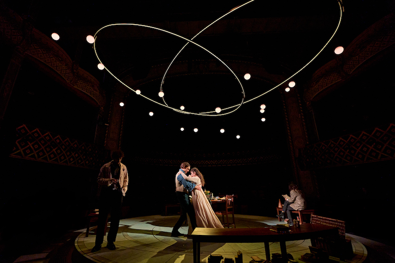 This is though a luminous ensemble, who sing with the planets revolving as brightly above, lit by Guy Hoare. They shift, gleaming from moonstone to an ominous pink supermoon. Eales’ stage revolves with past and present characters brushing past each other around one spheric table as the planetarium stage-floor twirls; they ride love and chance like a carousel. Just four curved benches mark the outer stage, like the bounds of a known system already pierced by new discoveries. There’s a thrilling, almost vulnerable transparency. And humour. This might be Stoppard’s funniest play: there’s so much humanity for actors to pause with. Conversely the passionate speeches are about science, made by those achingly in love with their addressee. Though playing nearly three hours, just one further (minute) trim suggests itself. This production flies by; especially in the second half.