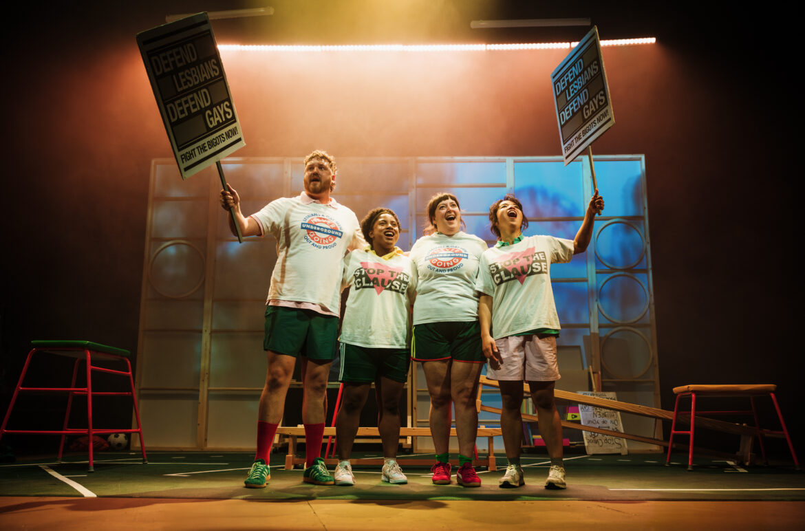 Zakk Hein’s video work is graphically helpful and neatly integrated, bursting into rapture with the Manchester footage. Choreographed by Sung-Im Her, the four actors dance parodically (around Stevens’ Thatcher), mimic, but above all celebrate when in activist roles. Lit by Jodie Underwood (occasionally the spotlighting isn’t synched, but should be for the run), the flight of colours evokes the time too. As do the prop-light set and costumes by Bethany Wells, Owen Crouch’s sound and co-music production with music direction by Martin Lowe is visible as well as audible stage-right.